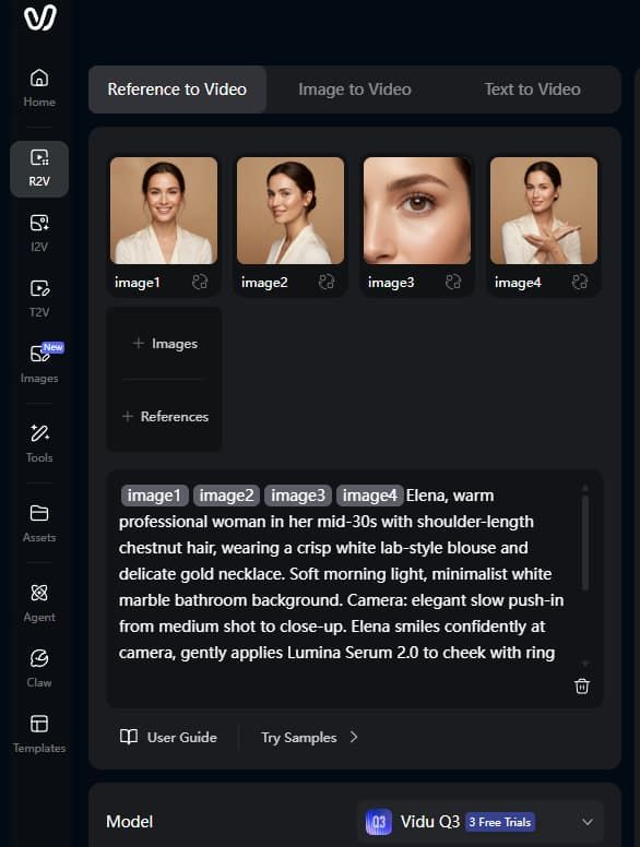 Step 3: Upload references + prompt into Vidu Q3-Mix Reference-to-Video