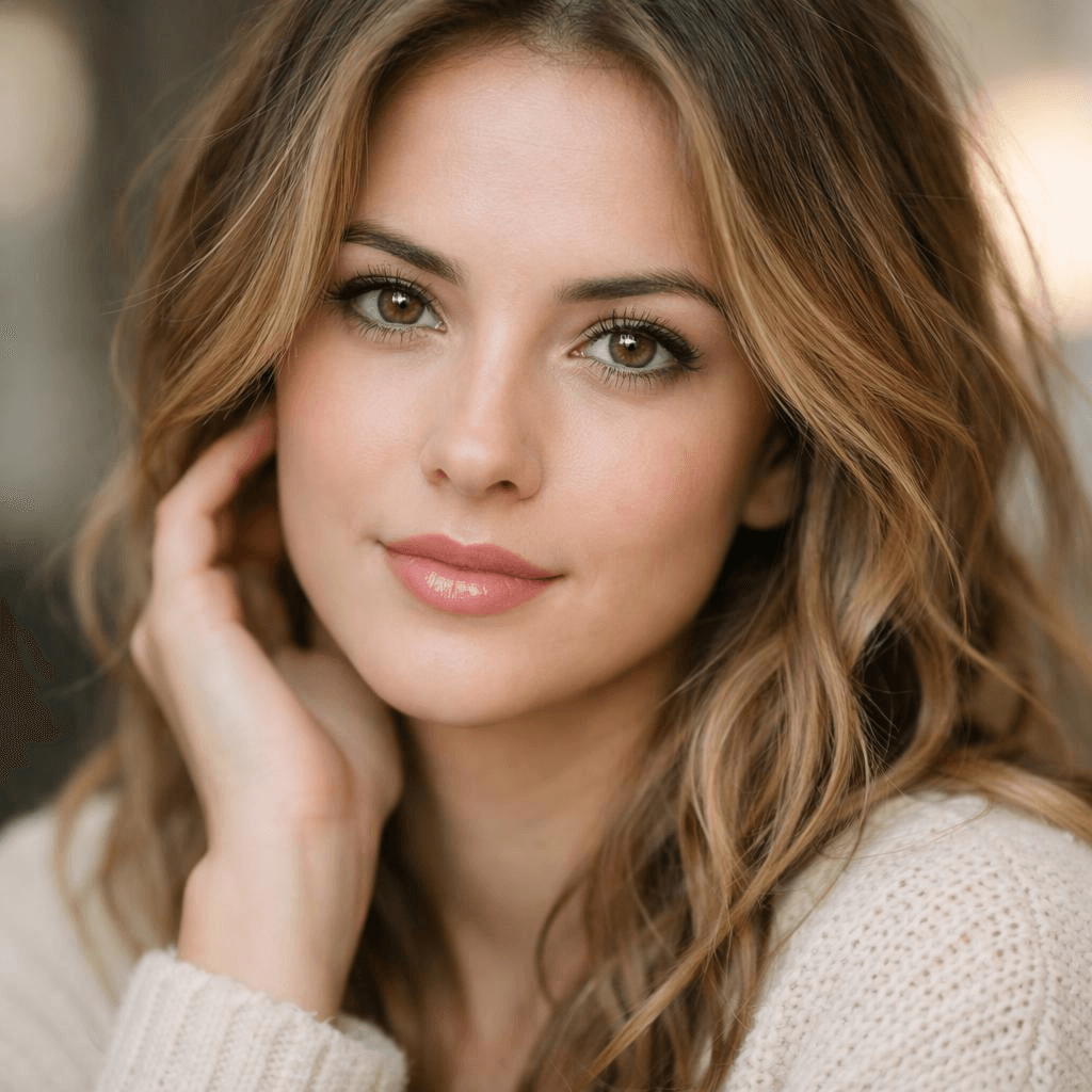 A close-up portrait, 85mm lens, shallow depth of field, eye-level angle, soft background blur