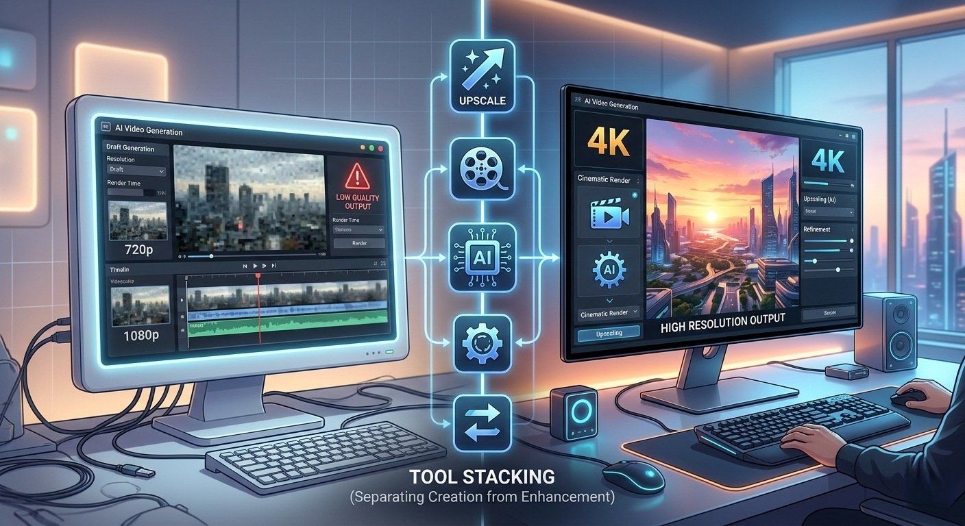 In the landscape of free AI video upscaler 2026 technology, the secret to professional-grade content isn't finding one "magic" button—it is about "tool stacking." To achieve a high resolution AI video free of subscriptions, you must separate the creation from the enhancement.