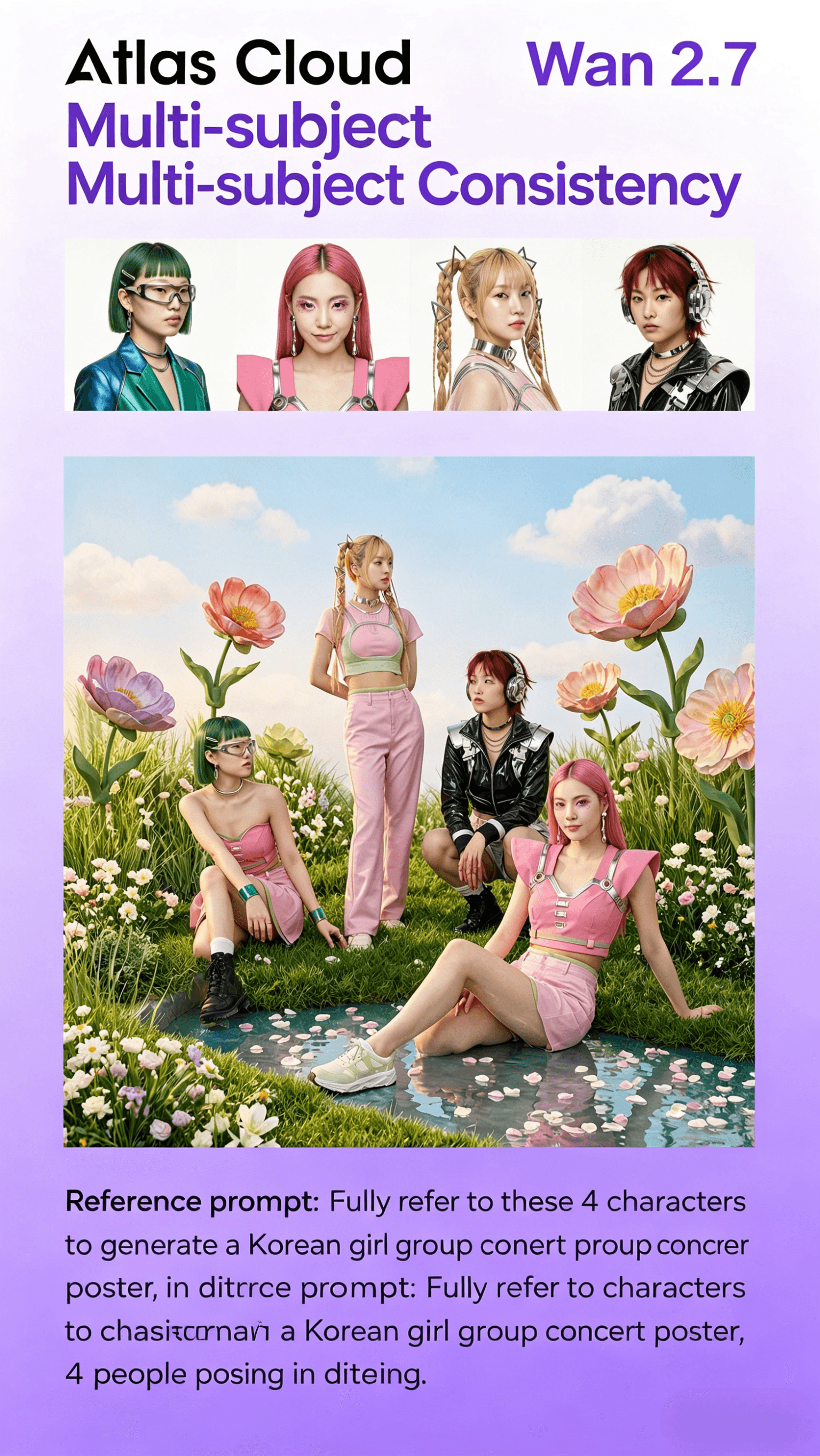 Wan 2.7‑Image excels in solving industry pain points, enabling users to create a "thousand people, thousand faces" girl group and accurately control face details and colors through prompt words. Its key upgrade highlights include: