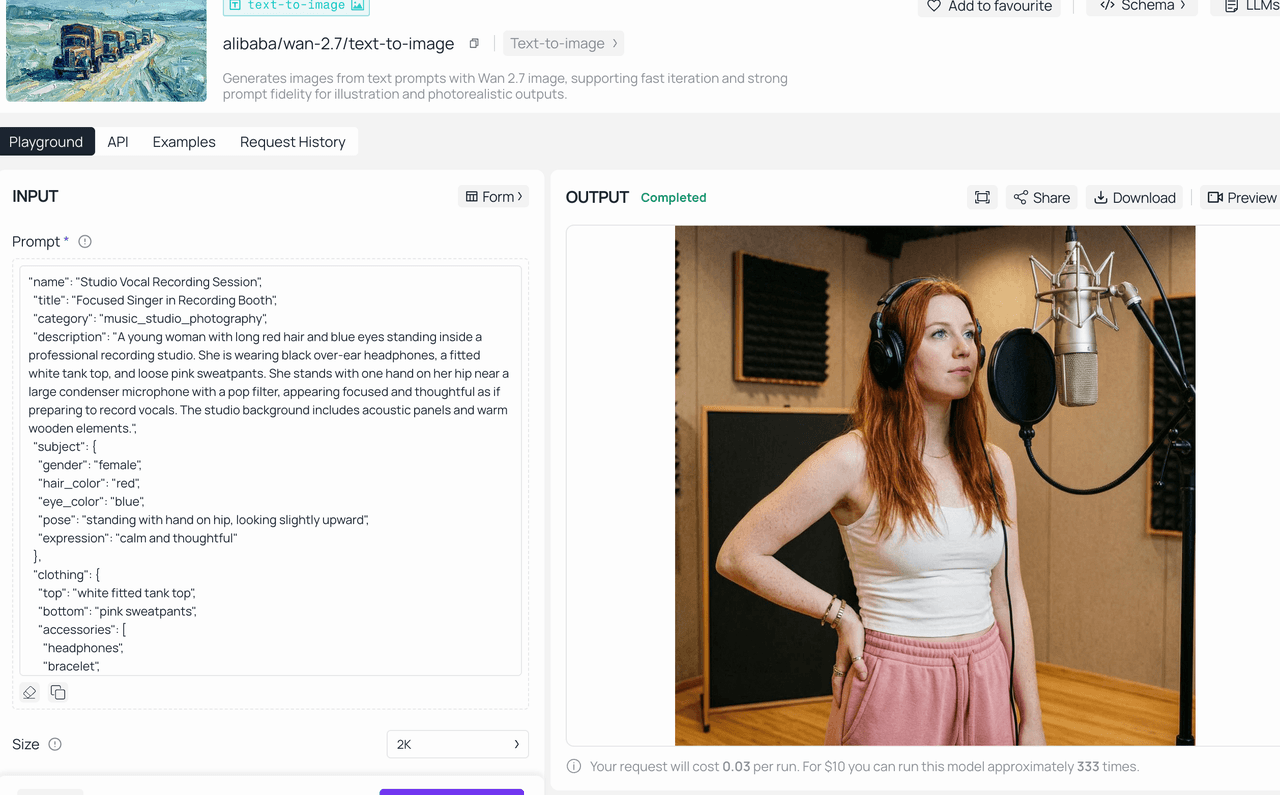 Wan 2.7-Image-Pro offers more stable image composition, a sharper and more precise understanding of prompts, and high-definition 4K output. For digital content, 2K output provides strong image quality with faster generation times. The 4K Pro tier is best reserved for final hero assets, campaign imagery, and print production work.