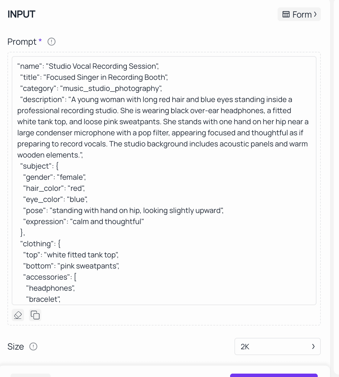 • 2K resolution (up to 2048×2048 pixels) — our recommended default option for most professional workflows