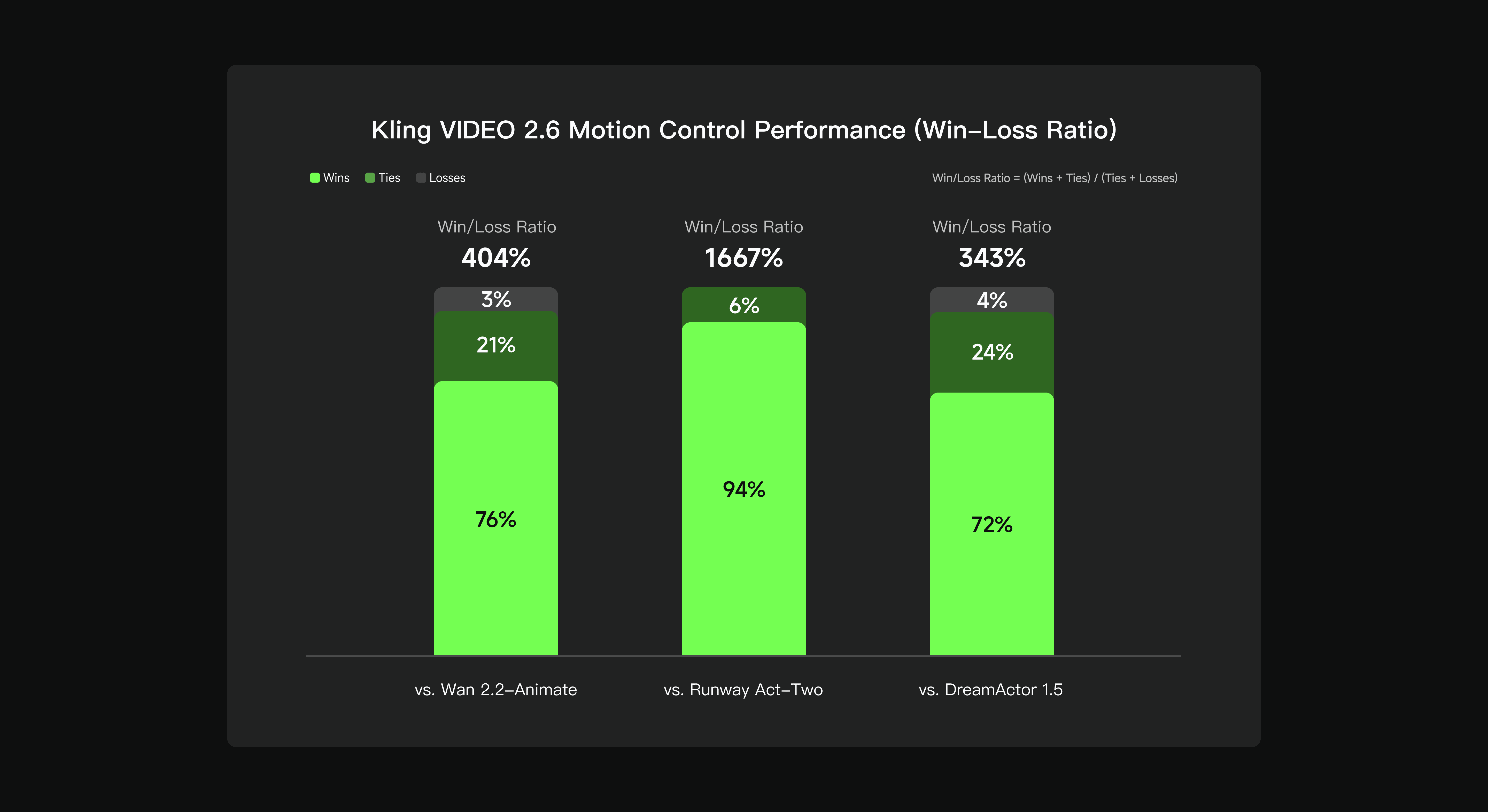 Логика проста: Зеленый означает победу Kling, Темно-зеленый — ничья, а крошечная серая полоска сверху? Это единственное место, где он проиграл.