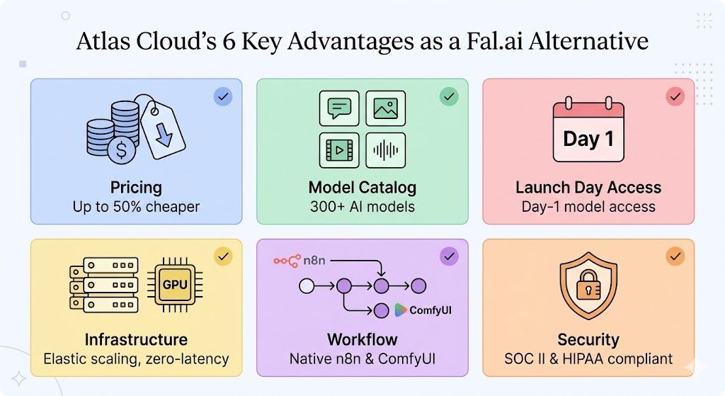 Below are the six key reasons why Atlas Cloud stands out as a Fal.ai alternative in 2026: