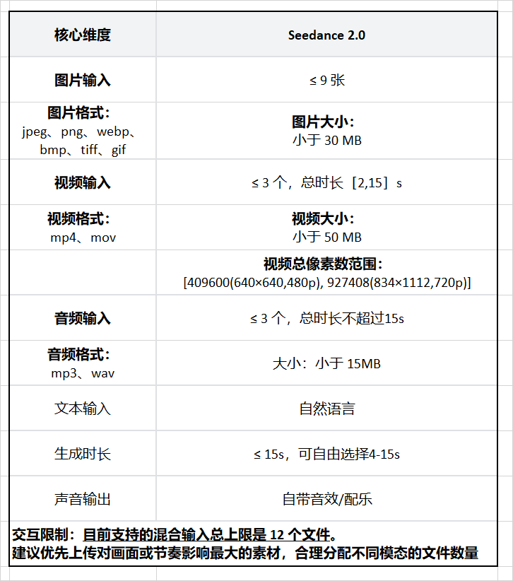 - **Seedance 2.0 是什麼:**字節跳動最新的多模態影片生成模型,徹底升級了影片生成的底層邏輯。Seedance 2.0 引入了影像、影片、音訊、文本四種模態輸入,支援更豐富的表達方式和更可控的生成結果,為Seedance家族再添一名猛將。